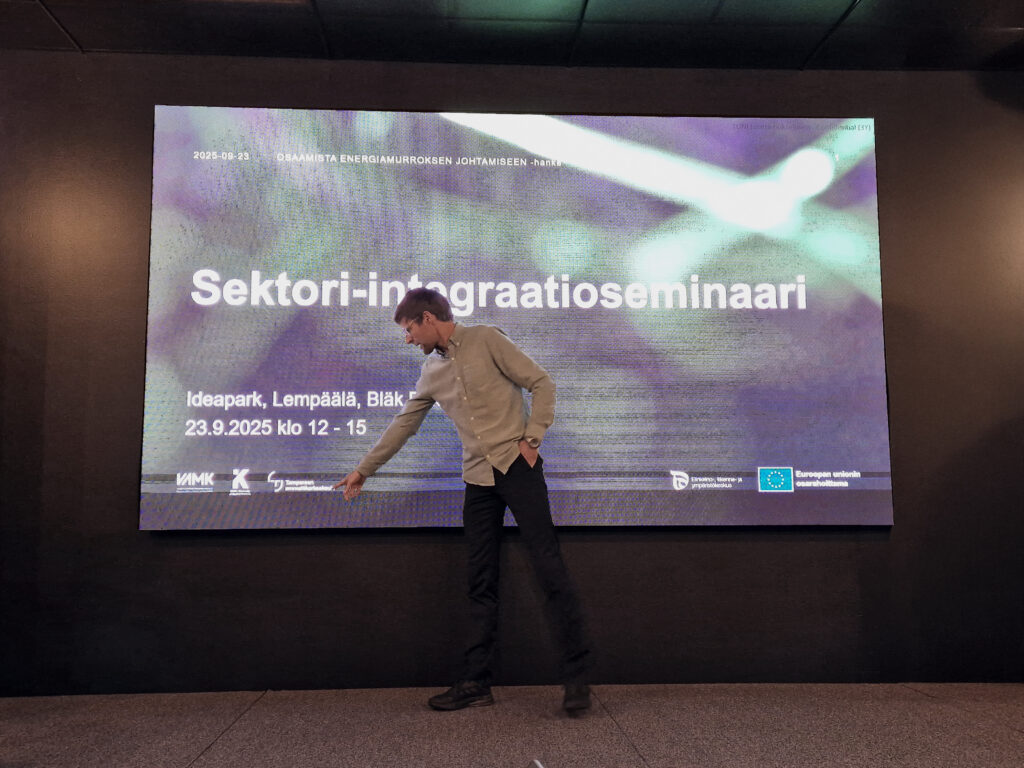 Tampereen ammattikorkeakoulu järjesti 23.9.2025 sektori-integraatioon eri kantilta pureutuvista puheenvuoroista koostuvan seminaarin Lempäälän Ideaparkin Bläk Boks -klubilla. Seminaarin jälkeen halukkaat pääsivät vielä tutustumaan Marjamäen LEMENE-energiayhteisöön. Paikalla oli yleisön lisäksi hankeasiantuntijoita Tampereen, Vaasan ja Kajaanin ammattikorkeakouluista. Tässä tekstissä kerrataan seminaaripuheenvuorojen ja energiayhteisövierailun antia.